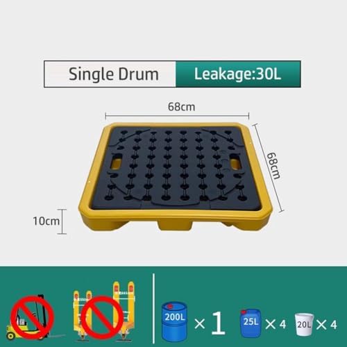 The modular spill containment pallet is the ideal solution for effectively containing spills. Thanks to its seamless construction and integrated drip tray, this pallet ensures reliable spill protection, safeguarding your work area from potential contamination and the associated fines. The user-friendly design includes a removable deck rack, making cleaning effortless and ensuring a safe and compliant working environment. This versatile spill containment pallet is perfect for a variety of applications, including industrial parks, warehouses, and aquaculture water storage facilities. Made from robust polyethylene, it is designed to withstand the rigors of daily use and maintain its stability over time. Available in three convenient sizes, each with specific dimensions to meet your needs, this spill containment pallet also boasts an attractive, colorfast yellow and black design. Waterproof, wear-resistant, and cold-resistant, the modular spill containment pallet guarantees optimal performance in a wide range of conditions. Its high load-bearing capacity varies depending on the size, allowing you to select the perfect option for your operational requirements. Additional features include detachability, foldability, and a lifting function, optimizing functionality for storage and transport. With the modular spill containment pallet, you are investing in a reliable solution for containing spills, prioritizing safety and efficiency. Each package contains one spill containment pallet, making it a valuable addition to your safety measures. Protect the environment and comply with all regulations with this01al tool for any industrial application.
